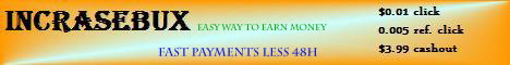 Incrasebux.com je super klikačka s pomněrně nízkým payoutem 3,99$ a standartní cenou za klik 0,01$. Velmi dobrý je rychly payout do 48 hodin